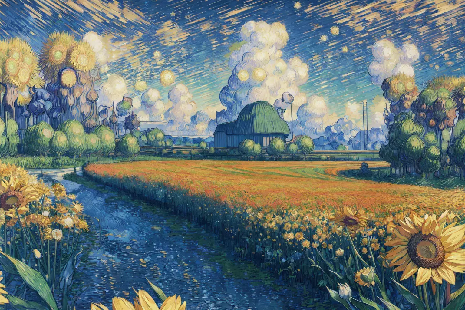 Prompt: best quality, official art, extremely detailed CG unity 8k wallpaper, highly detailed, absurdres, flower field, flower sea, masterpiece,((Van Gogh style))
