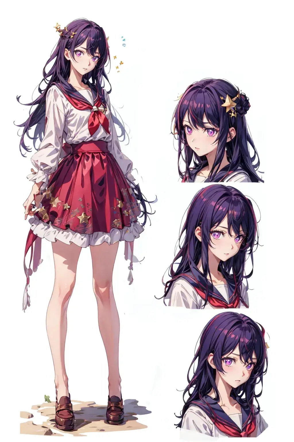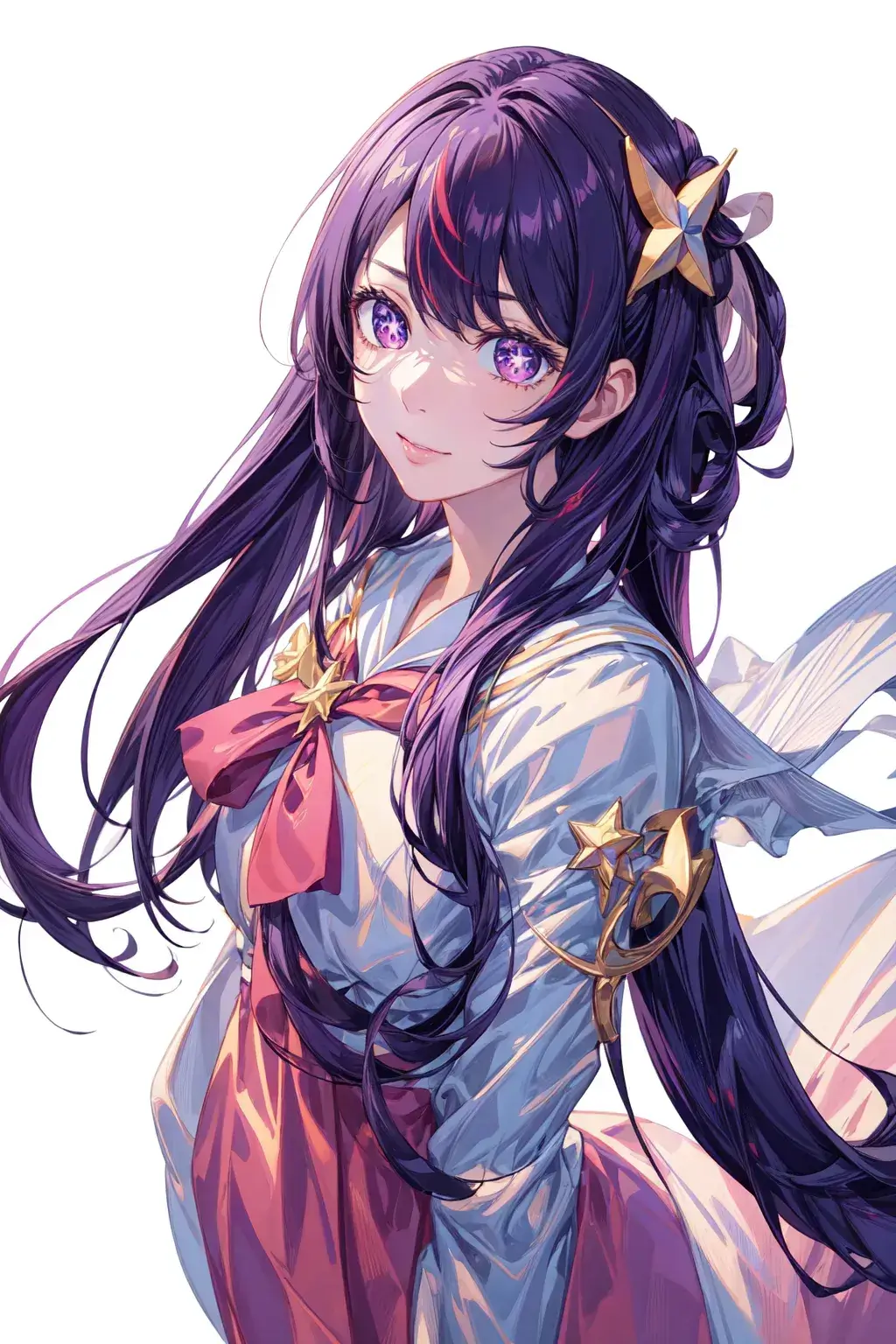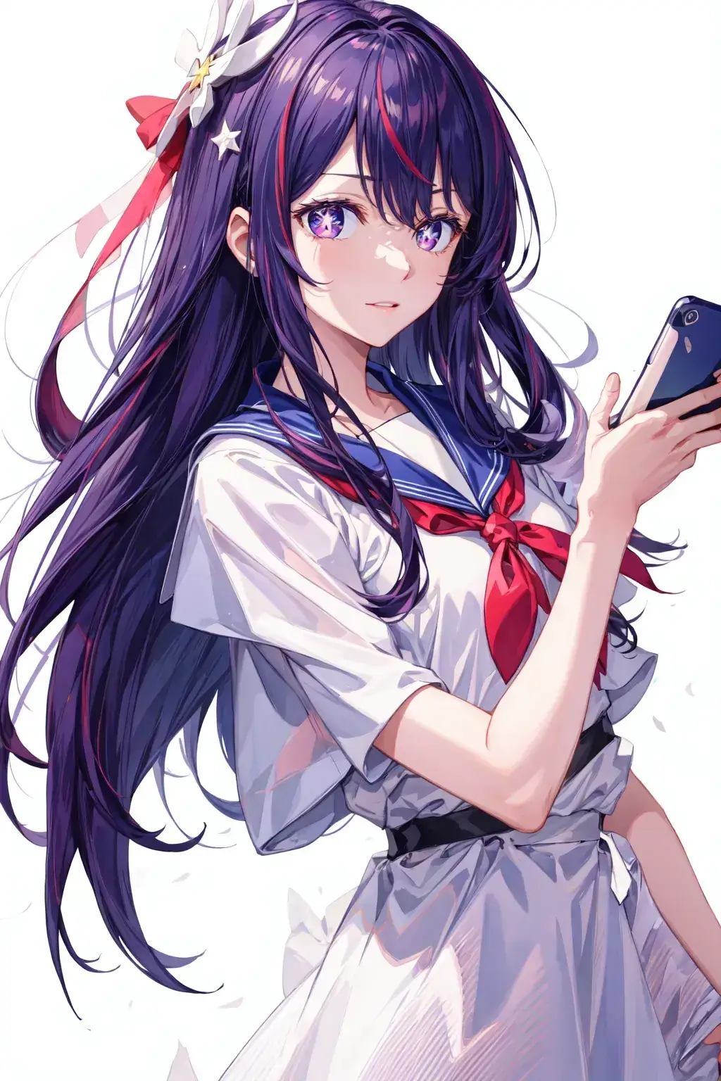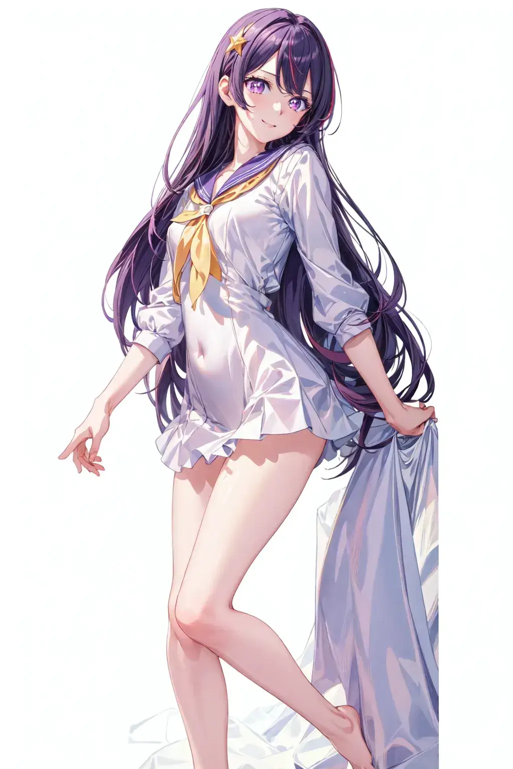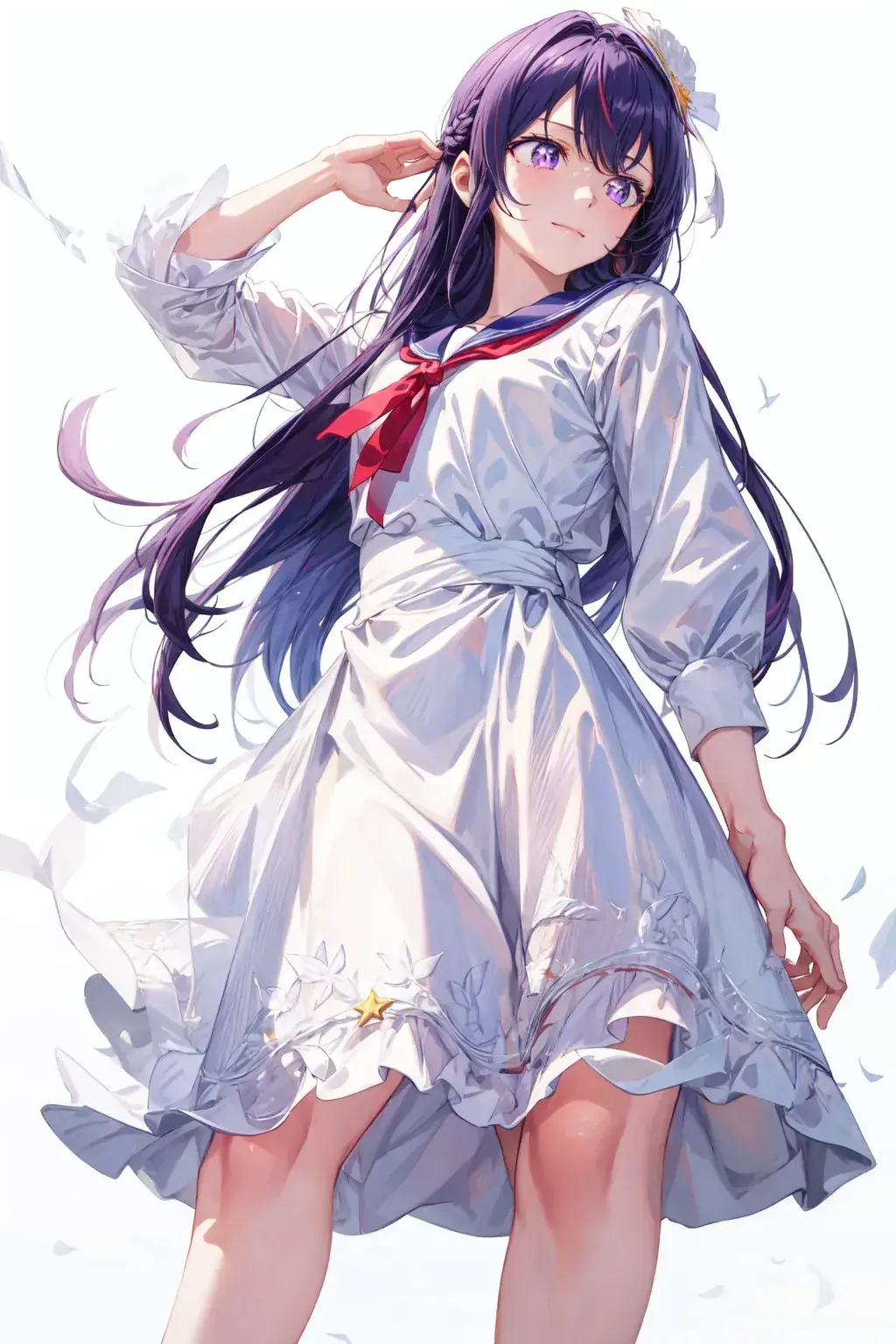 Prompts: masterpiece, best quality, official art, extremely detailed CG unity 8k wallpaper, exquisite facial features, prefect face, shiny skin, female, ((Ai Hoshino)),solo, light smile, sailor suit, ((White background))
